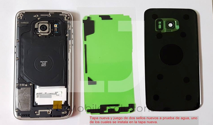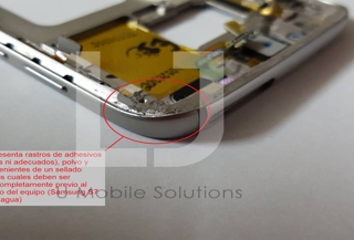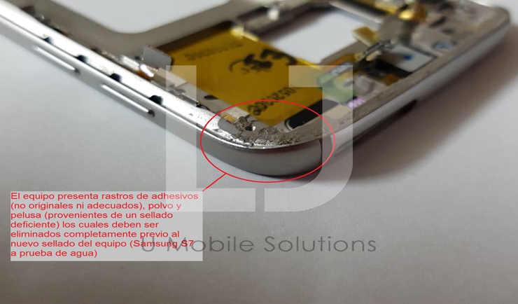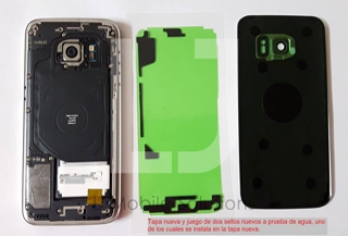 La reparación consistió en el reemplazo completo de la tapa trasera, eliminación exhaustiva de residuos, suciedad y adhesivos en la carcasa, y colocación de adhesivos nuevos a prueba de agua con certificación IP68 específicos para el SM-G930.